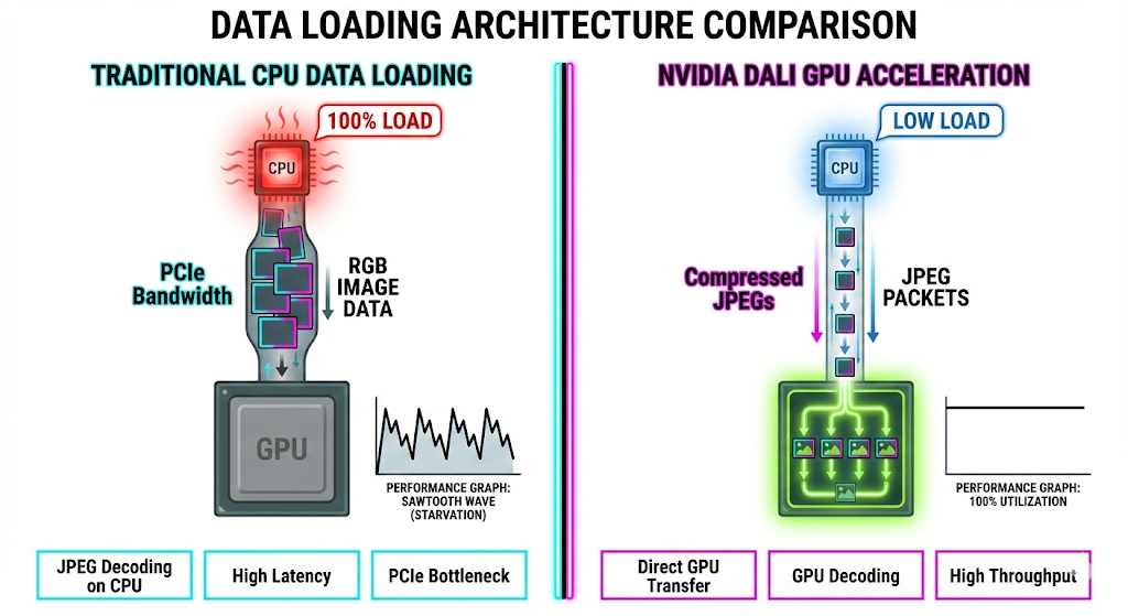 针对这一核心痛点,NVIDIA推出了DALI(Data Loading Library),一款专为深度学习训练优化的GPU加速数据预处理库,其核心目标就是将原本依赖CPU的图像解码、尺寸变换等密集型预处理操作,迁移到GPU上并行执行,打破数据加载的性能瓶颈,让GPU的算力得到充分发挥。